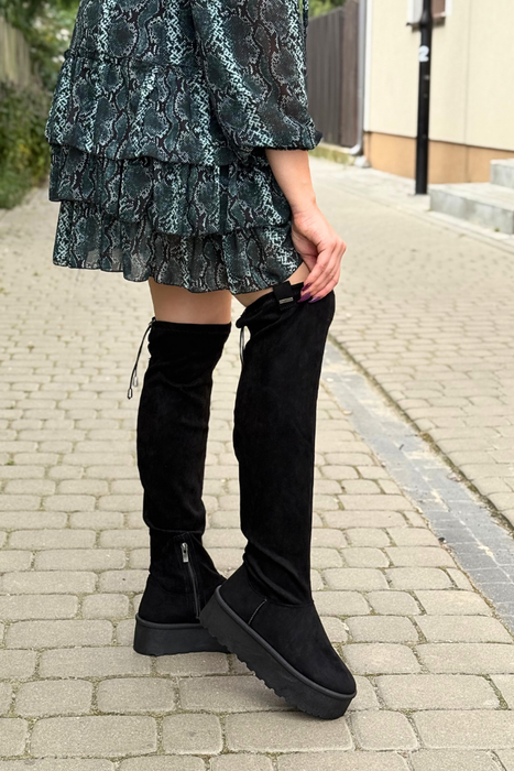 Oferujemy kozaki zamszowe, które doskonale sprawdzą się w chłodniejsze dni, a jednocześnie podkreślą Twój elegancki wygląd. Jeśli lubisz odważniejsze stylizacje, nasza oferta obejmuje również długie kozaki za kolano na masywnej podeszwie, które dodadzą charakteru każdemu outfitowi. Dostępne są buty w kolorze czarnym i khaki. Oferujemy również model z dodatkowym ociepleniem wewnętrznym wykonanym z koca obuwniczego, który zapewnia wyjątkowy komfort w chłodniejsze dni.