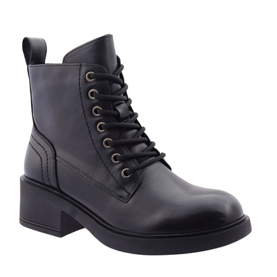 ( Ilość produktów: 260 )CambellCzarne botki damskie skórzane na obcasie sznurowane Cambell