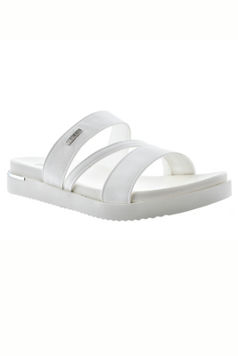 Najniższa cena z ostatnich 30 dni: 129,00 zł/1szt.-20%zaxyBiałe klapki z paskami na obcasie z platformą