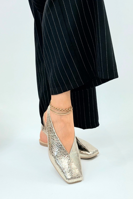Najniższa cena z ostatnich 30 dni: 329,00 zł/1szt.-20%VeneziaZłote skórzane czółenka płaskie z kwadratowym noskiem Venezia