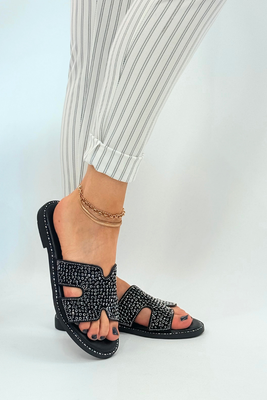Najniższa cena z ostatnich 30 dni: 269,00 zł/1szt.-24%FilippoCzarne klapki w cyrkonie płaskie Filippo