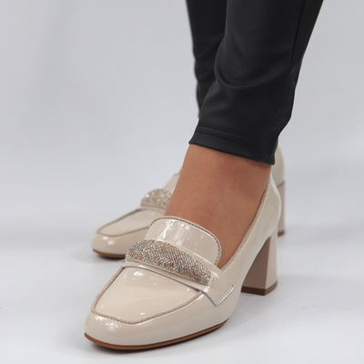 ( Ilość produktów: 196 )VincezaPółbuty skórzane lakierowane na obcasie beżowe Vinceza