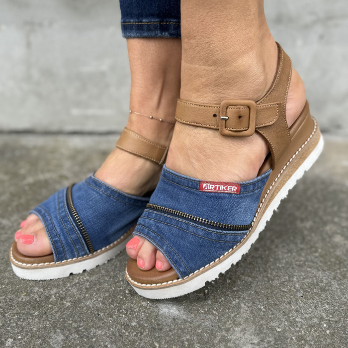 Najniższa cena z ostatnich 30 dni: 167,99 zł/1szt.-27%ArtikerJeansowe sandały na koturnie Artiker