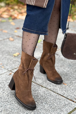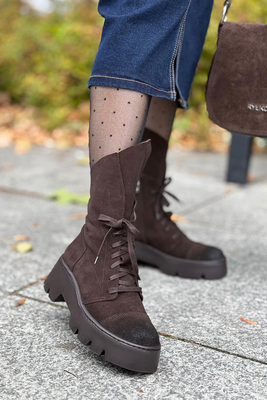( Ilość produktów: 5 )LamantiBrązowe skórzane sandały na klocku z platformą