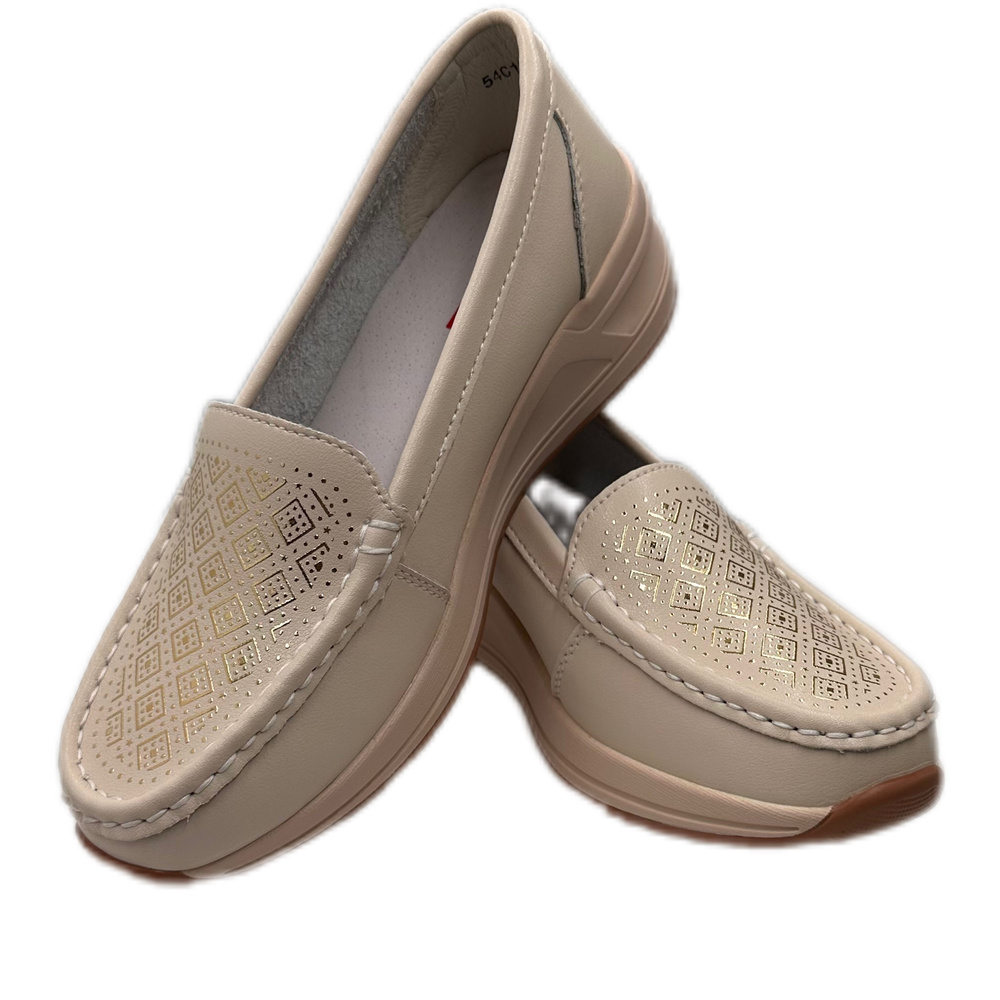 Beżowo złote skórzane półbuty na koturnie Artiker