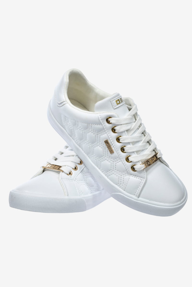 Białe pikowane trampki damskie ze złotymi akcentami