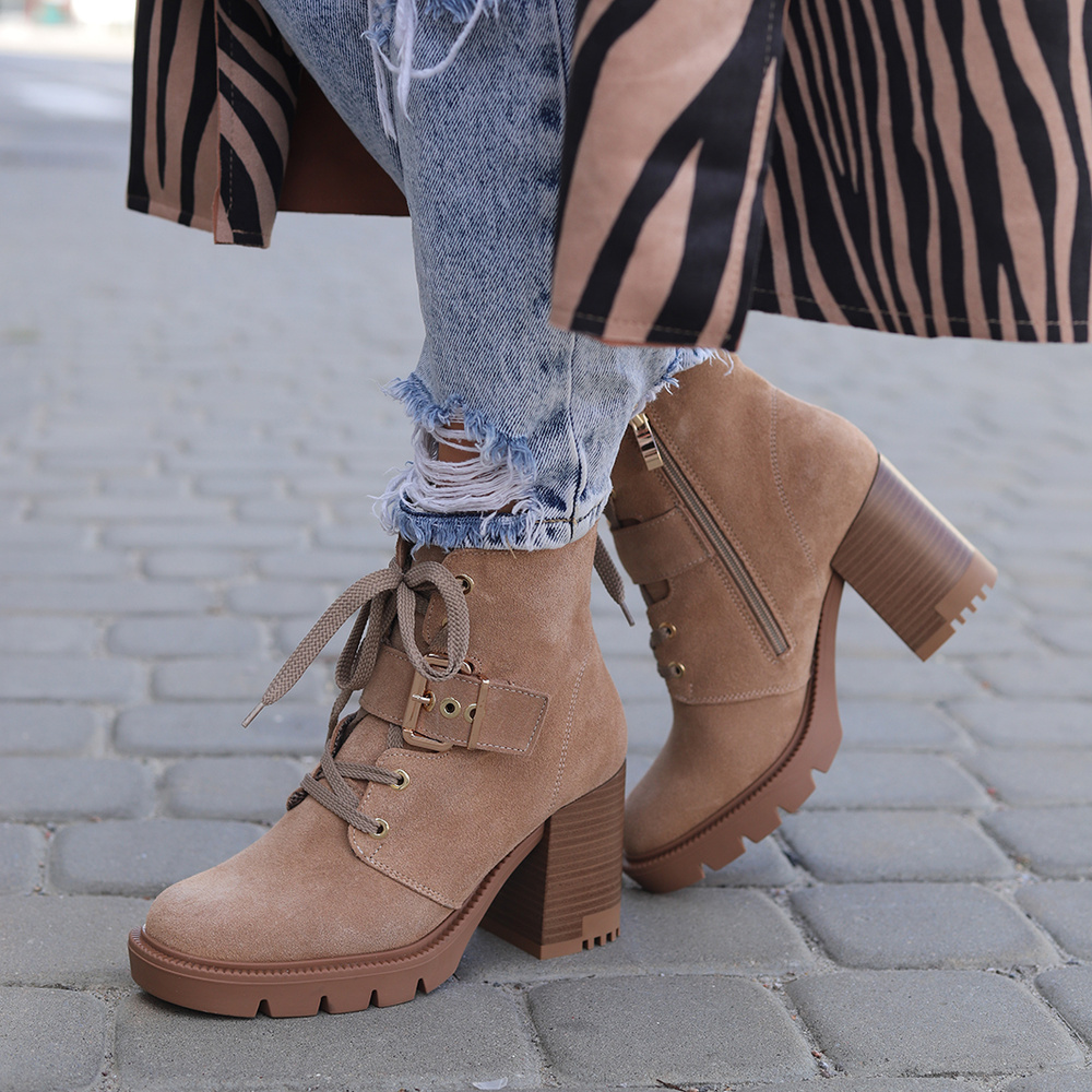 - beżowa cholewka i ozdobny pasek zapewnia efektowny wygląd,