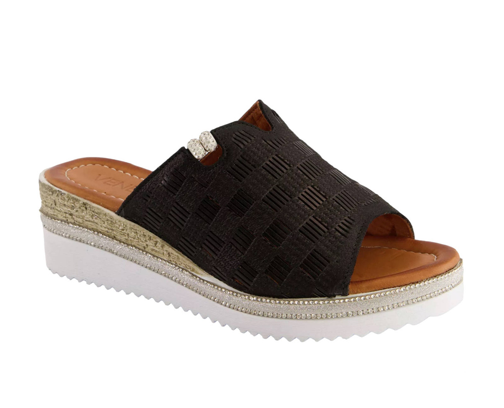 Czarne klapki damskie ze skóry na koturnie Venezia