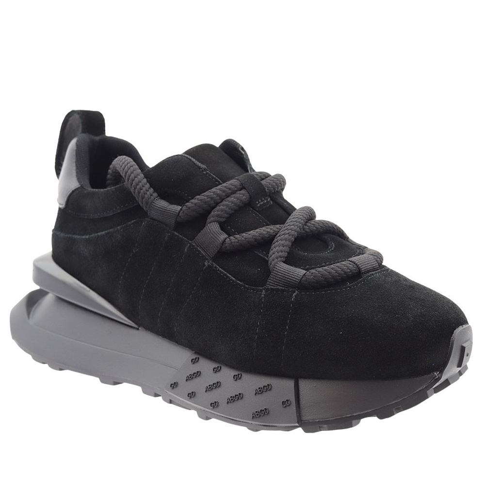 Czarne sneakersy damskie ze skóry zamszowej sznurowane