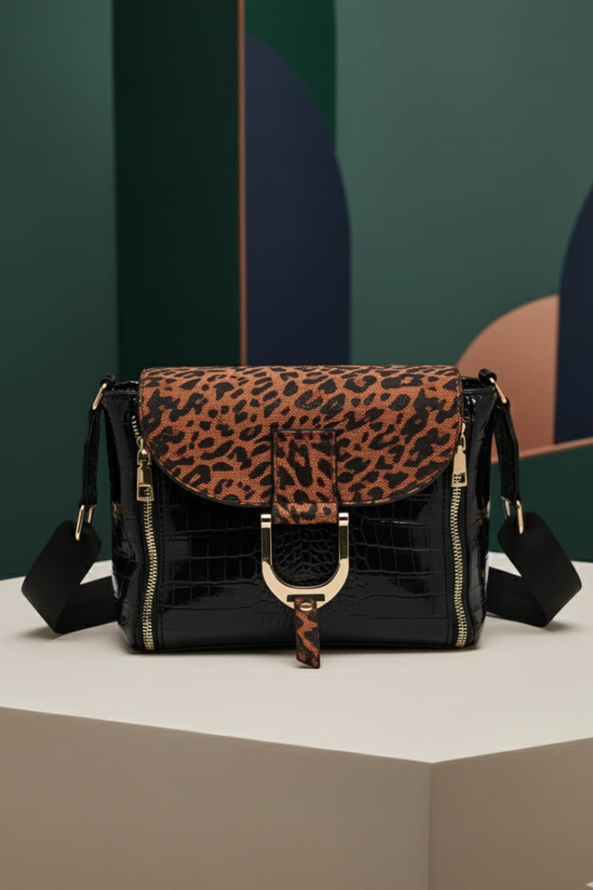 Wyobraź sobie wieczorne wyjście na miasto. Czerń lakieru połyskuje w świetle lamp, złote zamki dodają blasku, a panterkowa klapa przyciąga spojrzenia z daleka. To dodatek, który robi efekt „wow”, a jednocześnie jest maksymalnie praktyczny. Idealna dla kobiet, które lubią łączyć elegancję z odważnym, modowym twistem.