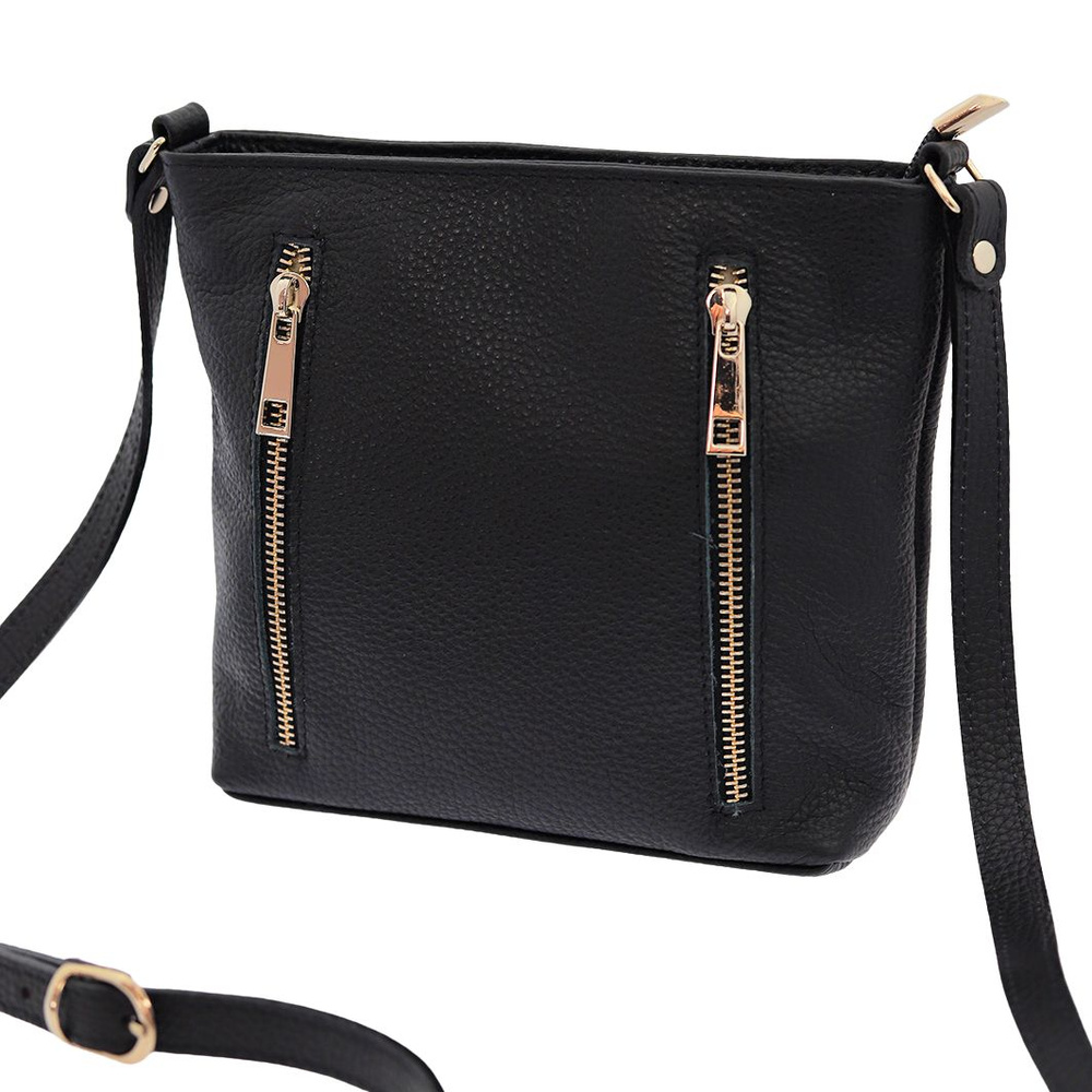 Mała czarna skórzana listonoszka z zamkami Ryłko