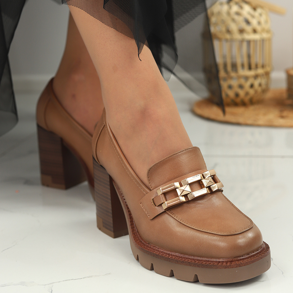 Opinie o Półbuty beżowe na słupku z klamerką Potocki