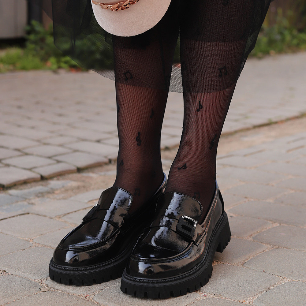 Półbuty czarne lakierowane na platformie T. Sokolski