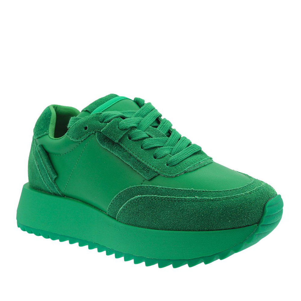 Sneakersy skórzane zamszowe na platformie w kolorze zielonym