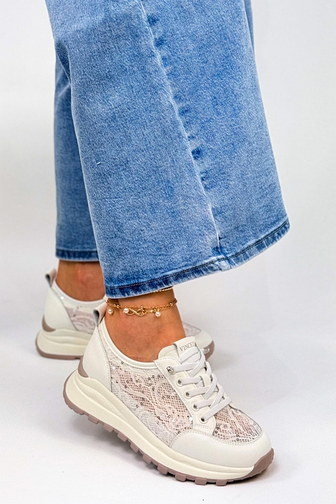 Półbuty białe z koronką sznurowane