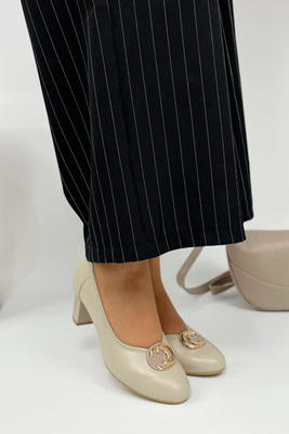 Najniższa cena z ostatnich 30 dni: 279,99 zł/1szt.+14%KordelCzółenka skórzane beżowe na ozdobnym klocku Kordel