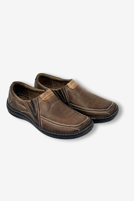 ( Ilość produktów: 38 )JOKERSkórzane półbuty męskie Polskie brązowe wsuwane z płaską podeszwą