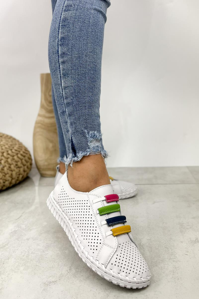 Skórzane półbuty białe płaskie