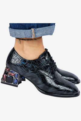 Najniższa cena z ostatnich 30 dni: 160,99 zł/1шт.-14%VincezaЧорні шкіряні туфлі на низькому каблуці з декором