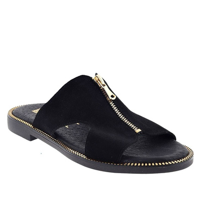 ( Кількість продуктів: 809 )LemarЧорні шкіряні шльопанці на блискавці Lemar