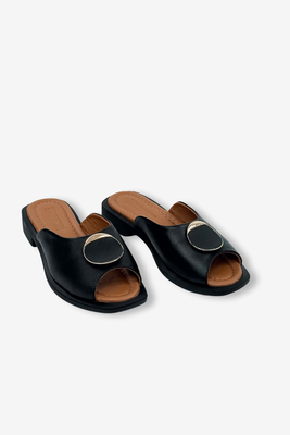 Najniższa cena z ostatnich 30 dni: 101,99 zł/1шт.-15%ArtikerЧорні шкіряні шльопанці з перфорованими клинами
