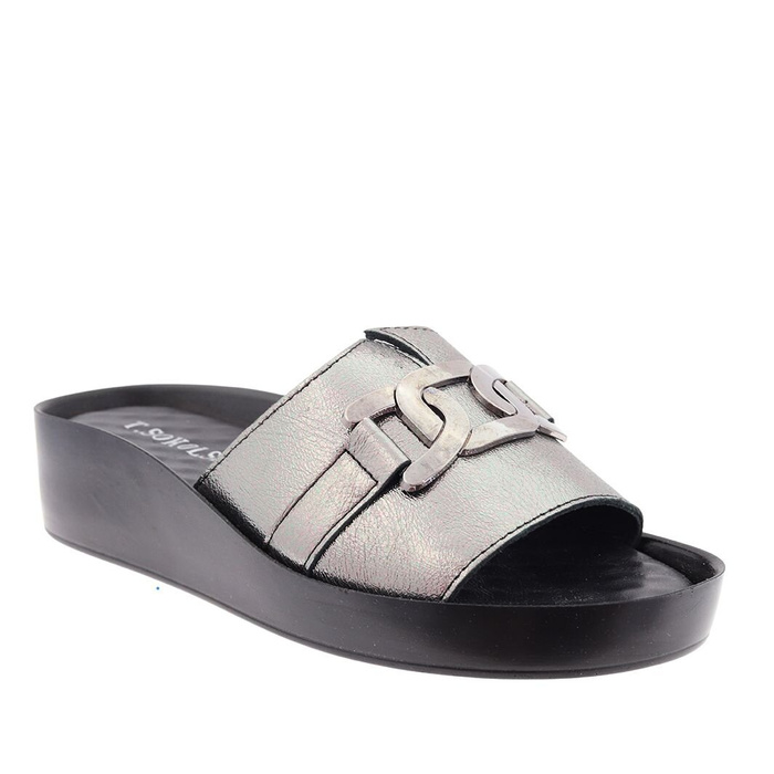Najniższa cena z ostatnich 30 dni: 109,00 zł/1шт.-19%T. SokolskiПлатинові шкіряні шльопанці на ланцюжку від T. Sokolski