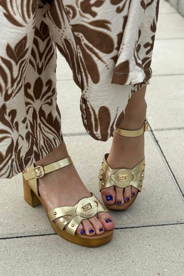 Najniższa cena z ostatnich 30 dni: 149,00 zł/1шт.-6%FilippoЗолоті шкіряні босоніжки на колодці з декором Filippo зверху