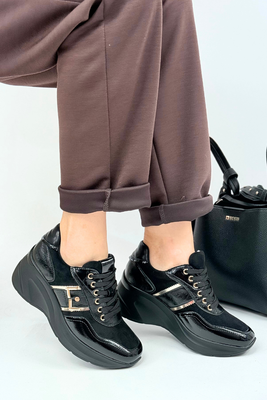 Najniższa cena z ostatnich 30 dni: 159,00 zł/1шт.-19%T. SokolskiЧорні лаковані кросівки на танкетці