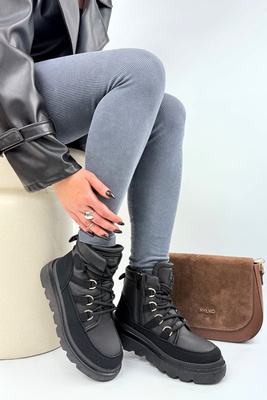 Najniższa cena z ostatnich 30 dni: 150,26 zł/1шт.-11%NEWSЖіночі чорні черевики-траппери на товстій підошві. Новини
