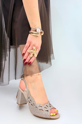 Najniższa cena z ostatnich 30 dni: 419,00 zł/1шт.-40%KordelЗолоті шкіряні босоніжки на високому каблуці Kordel