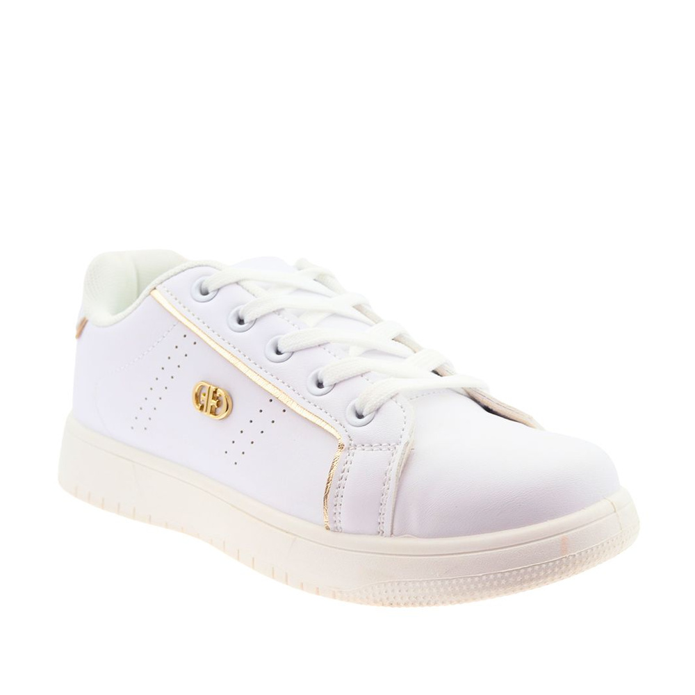 Білі кросівки на шнурівці на платформі з золотими вставками
