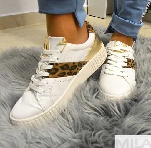 Взуття, що привертає увагу, з цікавими вставками Кросівки від німецького бренду Marco Tozzi - ідеальний вибір для багатьох стилів. Цей бренд створює якісне жіноче взуття, яке відрізняється комфортом і модним кроєм. Пропоновані нами кросівки Marco Tozzi відрізняються білим верхом і вставками з леопардовим принтом, що надає їм оригінальний вигляд. Ковка дозволяє добре пристосувати їх до стопи. Крім того, кросівкиMarco Tozziвідрізняються більш високою підошвою. Виготовлені з екологічної шкіри найкращої якості.
