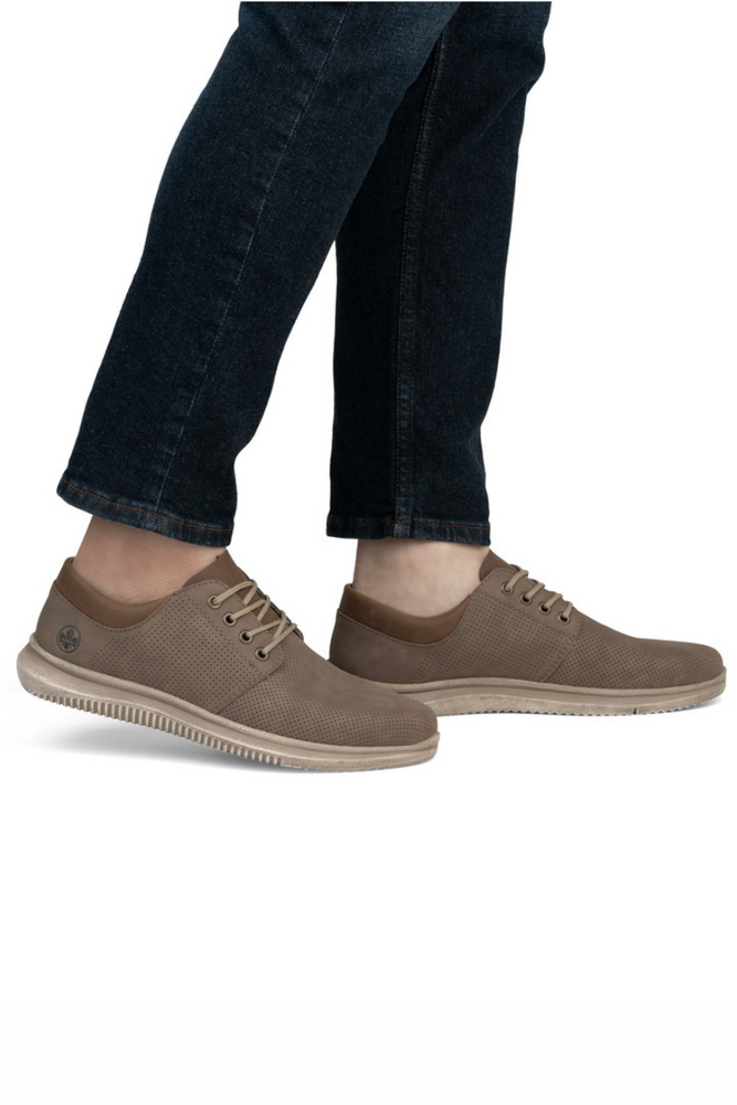 Чоловічі черевики коричневого кольору з нубуку, перфорація Rieker