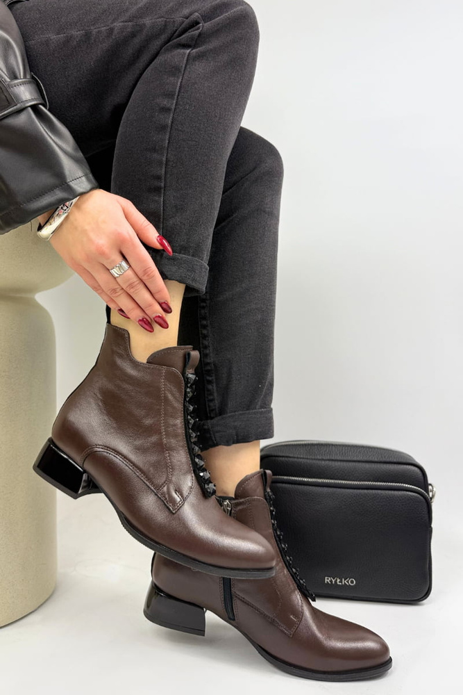 Чорні жіночі короткі шкіряні ботильйони Kordel на високому каблуці
