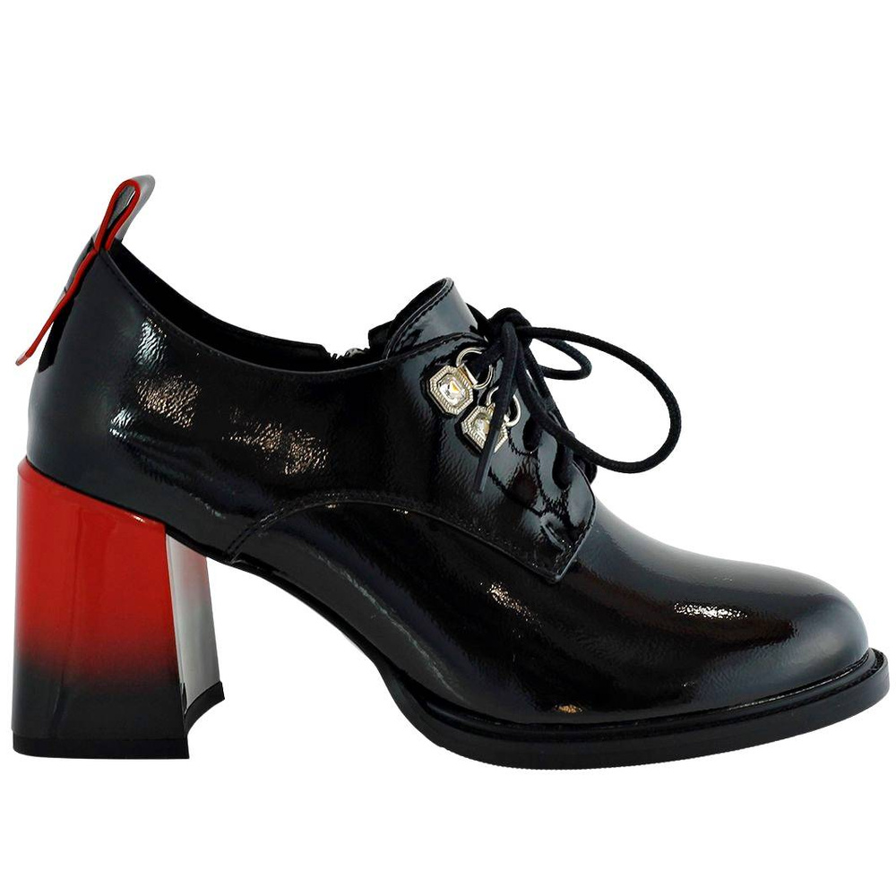 Пропоновані нами черевики S. Barski зручні завдяки стійкому каблуку та міцній версії. Крім того, вони характеризуються верхом з екологічної лакованої шкіри та затемненим каблуком. Крім того, завдяки шкіряній устілці в них зручно ходити. Взуття S. Barski чудово підійде як до брюк, так і до вільної сукні. Також цю модель вирізняє високий каблук, який додає сантиметрів і є стійким. Взуття S. Barski ідеально підходить як для повсякденного стилю, так і для особливих випадків.