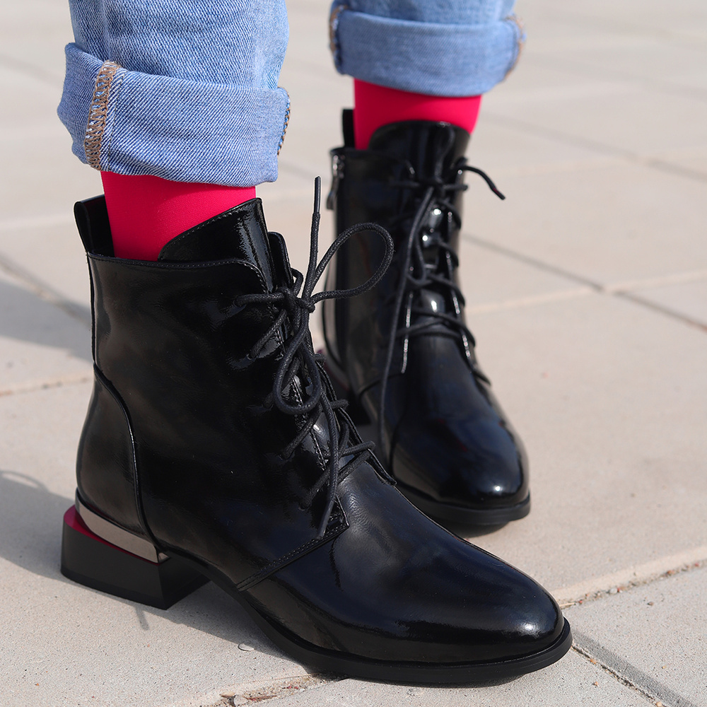 Черевики Artiker, які ми пропонуємо, є ідеальним вибором для зимового та осіннього сезонів. Лакований верх робить їх привабливими. Завдяки виготовленню з натуральної шкіри вони надійні та довговічні. Черевики Artiker мають блискавку з внутрішньої сторони верху, що полегшує їх надягання. У свою чергу, завдяки шнурівці вони добре прилягають до ноги. Універсальний колір дозволяє вписувати їх у багато стилів. Ботильйони Artiker в стилі ботильйони підійдуть до багатьох повсякденних стилів. Цікавий крій і форма каблука не дозволяють залишити їх без уваги. Комфортне носіння забезпечує низький стійкий каблук.