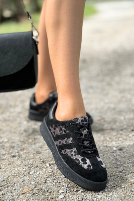 Najniższa cena z ostatnich 30 dni: 249,00 zł/1szt.-29%T. SokolskiPółbuty damskie skórzane czarne w cętki na płaskiej podeszwie
