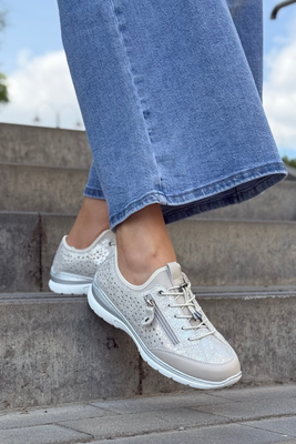 Najniższa cena z ostatnich 30 dni: 231,99 zł/1szt.-12%Loretta VitaleBeżowe skórzane przewiewne sneakersy sznurowane